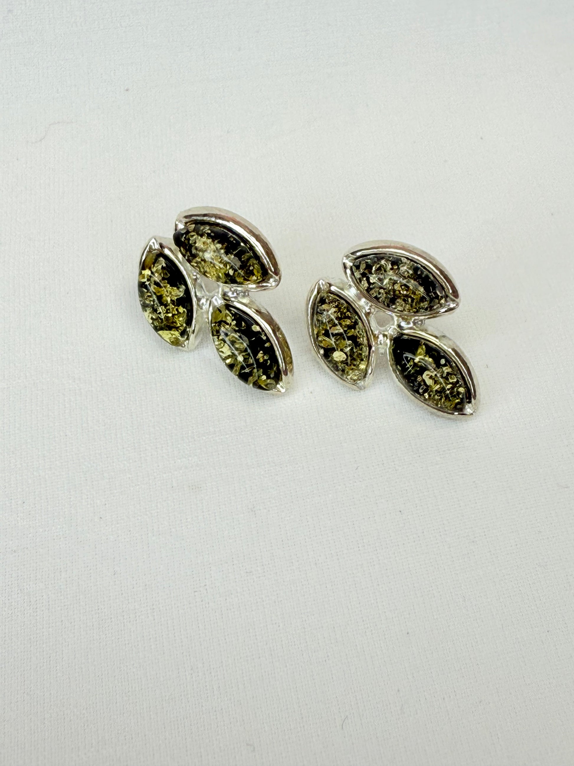 Petite paire de puce, fine, légère et élégante, orné de pierres d’ambre vert