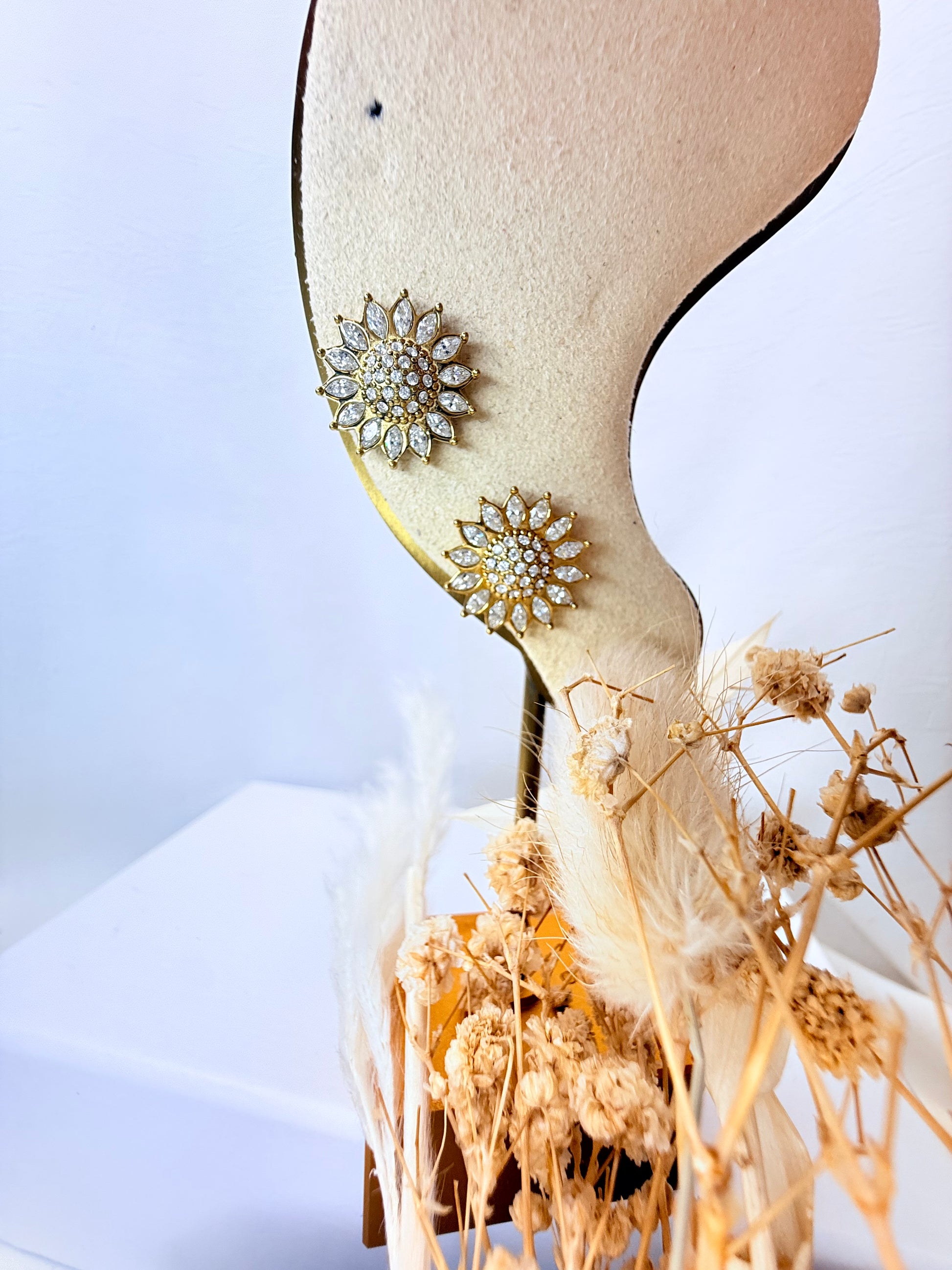 Petite bougies d’oreilles en forme de tournesol, tout en strass scintillants.