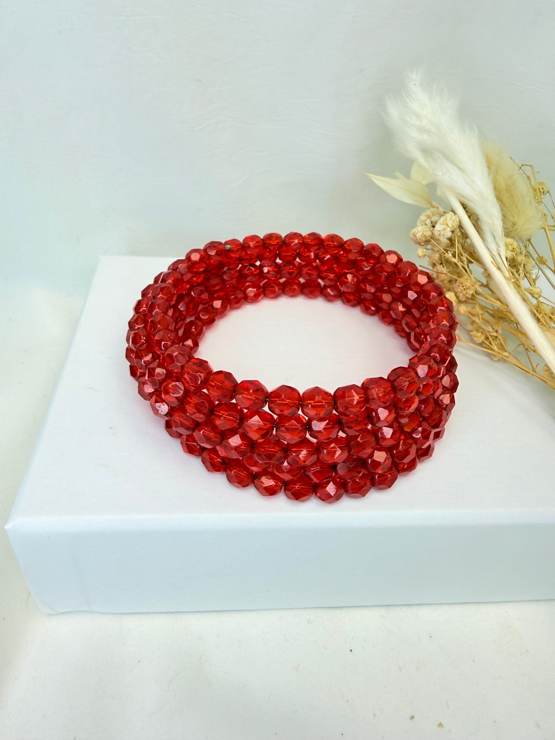 Bracelet ROWAN en forme de spirale souple qui s’enroule élégamment autour du poignet, composé de rangs de perles facettées en Cristal de Bohème,