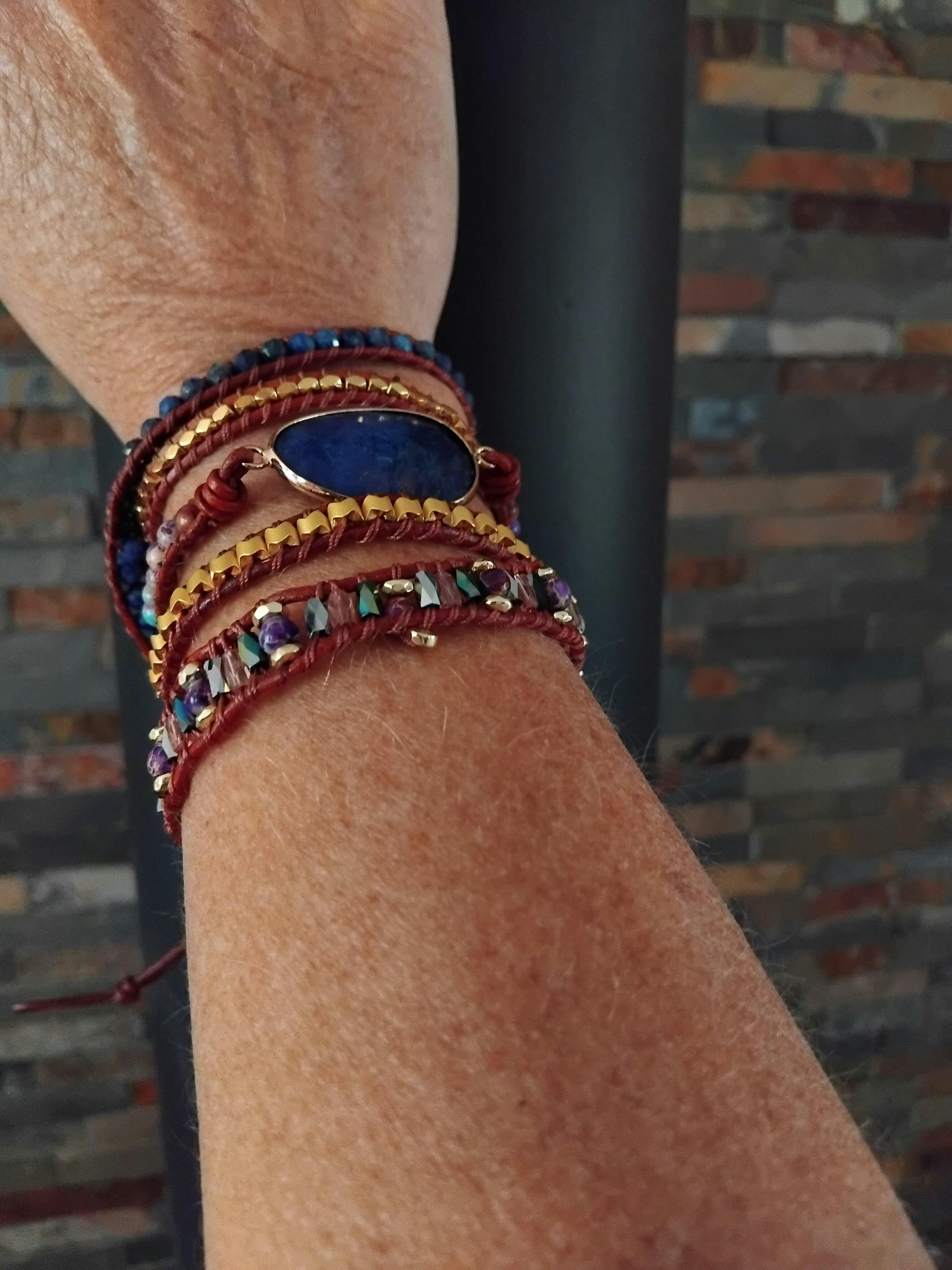 Bracelet style Boheme, tout en pierre naturelles, Lapis Lazuli, Jaspe imperiale et Hématite