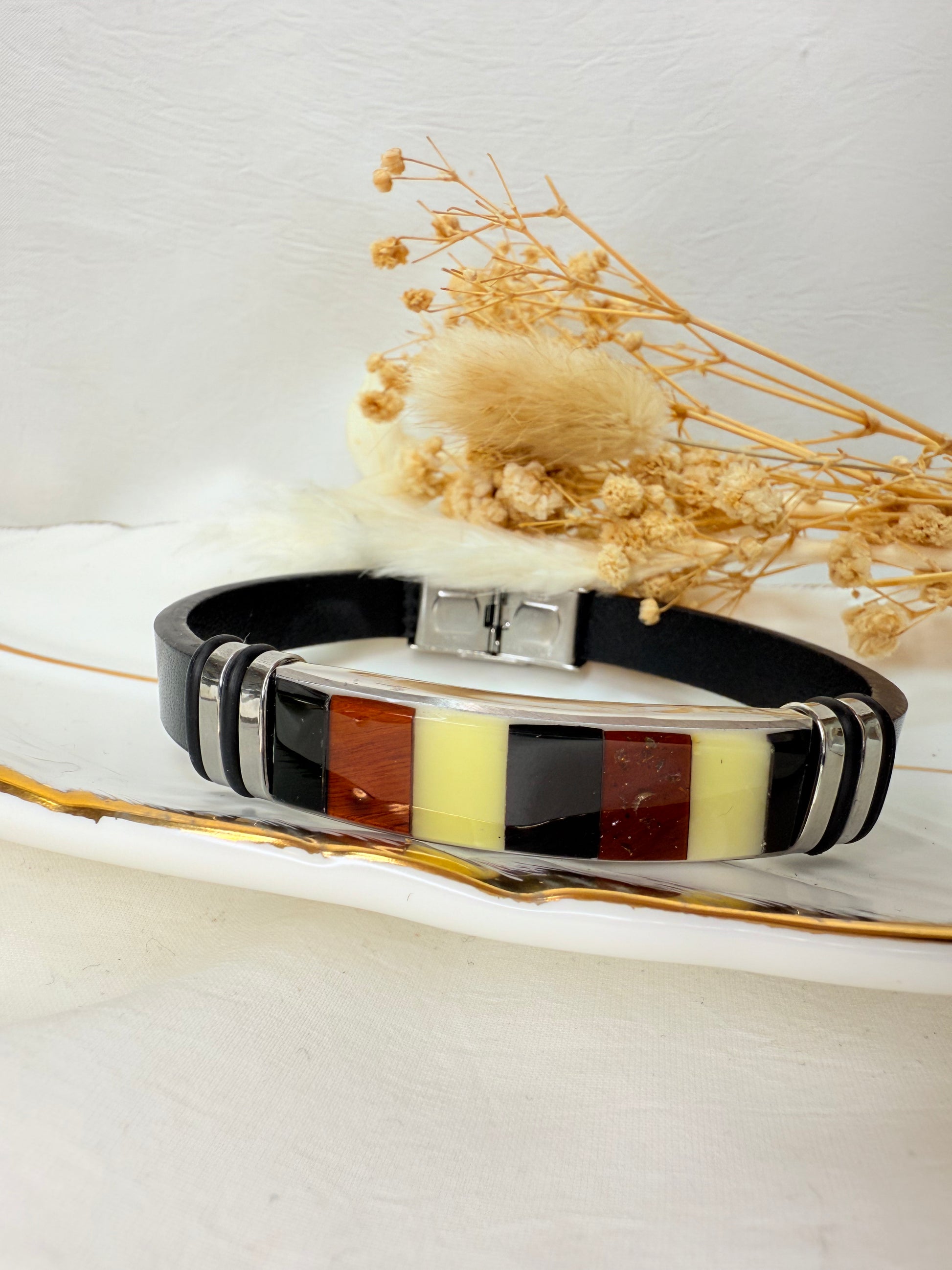 Bracelet ROWAN sera parfait pour les hommes, il associe authenticité et modernité grâce à ses perles d’ambre naturel, disponibles en version multicolore ou cognac. L’ambre, réputé pour sa chaleur et son éclat unique, est mis en valeur par une lanière de cuir véritable, apportant un style à la fois naturel, robuste et tendance.