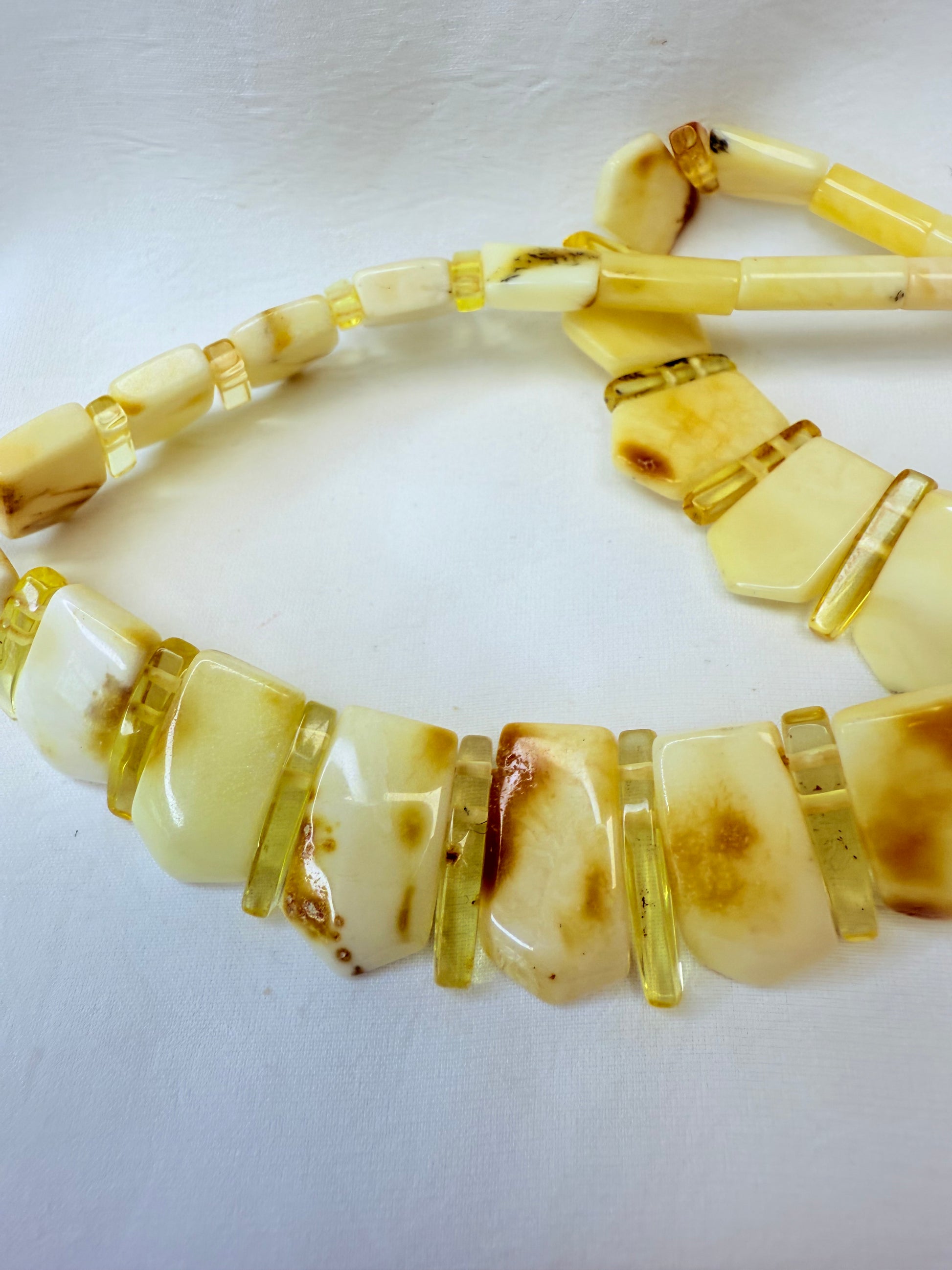 Incroyable collier en ambre en multiple reflets et nuances que le temps lui a offert.