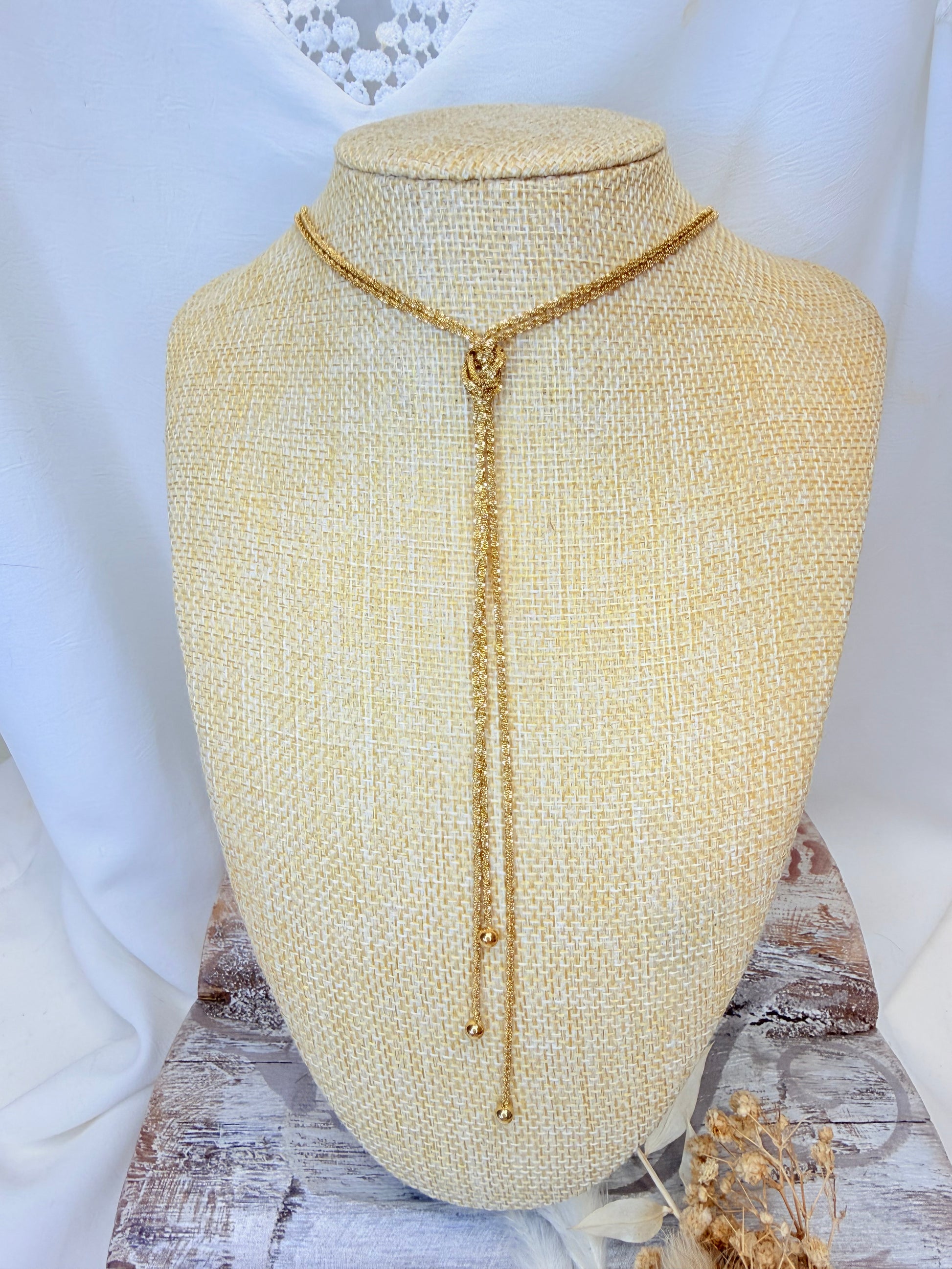 Collier en Y composé d’une double maille torsadée qui se rejoint en un nœud délicat.