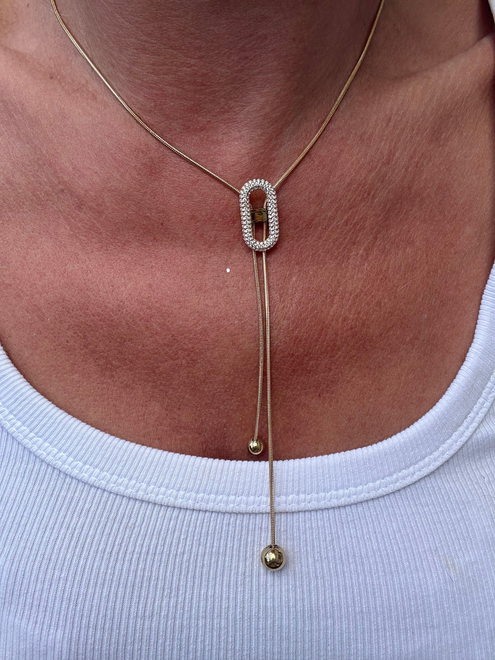 Le collier NOUR, en forme Y, parfait pour mettre en valeur votre décolleté.