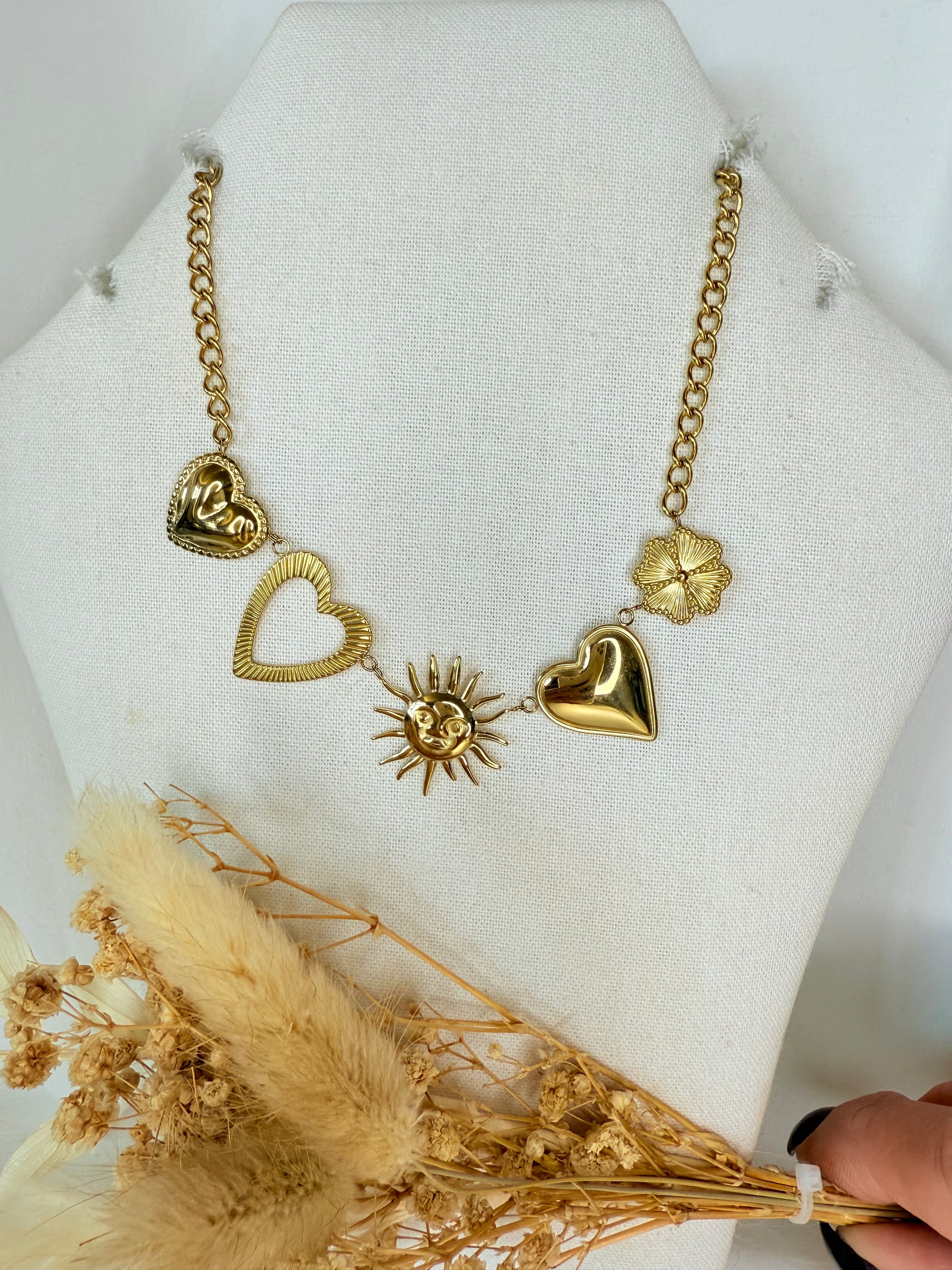 Le collier TALISAMANS DU CŒUR est une ode aux émotions, à la chance et la lumière.